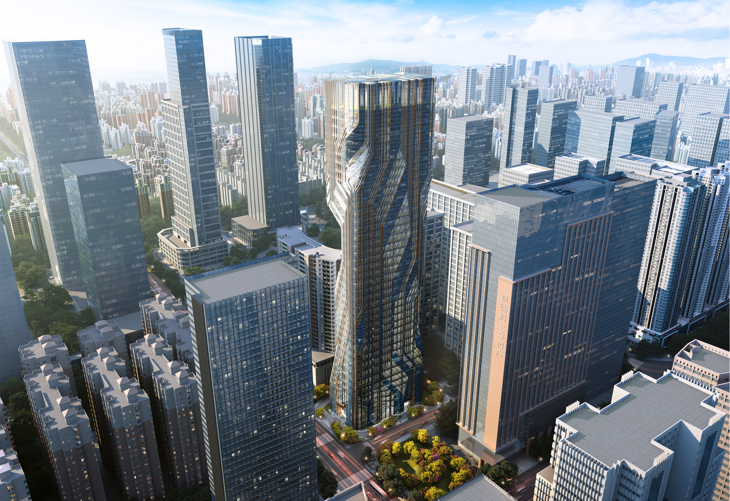 隨后,雙方就目前正在合作的福田金融科技研究院項(xiàng)目進(jìn)行技術(shù)交流。福田金融科技研究院項(xiàng)目是深圳市重點(diǎn)新基建項(xiàng)目之一,旨在打造我國法定數(shù)字貨幣和金融科技的高端科技研發(fā)中心,建設(shè)世界一流的金融科技產(chǎn)學(xué)研創(chuàng)新平臺、科技成果孵化中心、科技交流合作中心、金融科技人才培養(yǎng)中心。項(xiàng)目位于深圳市福田區(qū)核心CBD區(qū),總建筑面積約為7.6萬平方米,總投資約12億元,建筑高度199.75米。方案由扎哈·哈迪德建筑事務(wù)所(ZHA)設(shè)計(jì),中國建研院深圳分公司為設(shè)計(jì)-采購-施工總承包(EPC)的聯(lián)合體單位,主要負(fù)責(zé)項(xiàng)目的設(shè)計(jì)管理及全專業(yè)施工圖設(shè)計(jì)。目前通過雙方的互助協(xié)作推動了項(xiàng)目的順利發(fā)展。