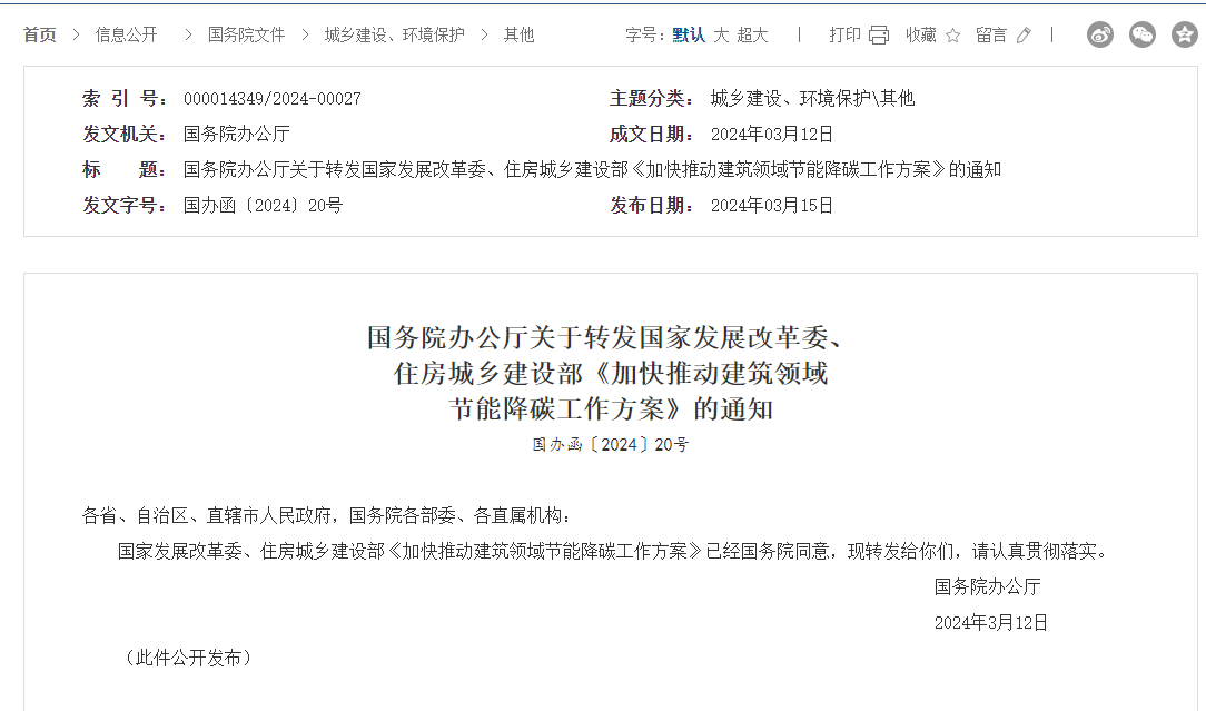 國務院辦公廳關于轉發國家發展改革委、住房城鄉建設部《加快推動建筑領域節能降碳工作方案》的通知