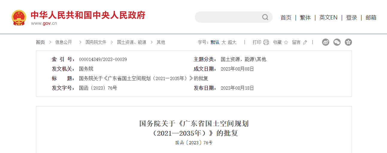 自然資源部《關于報請批準〈廣東省國土空間規劃(2021—2035年)〉的請示》(自然資發〔2023〕76號)收悉?,F批復如下: